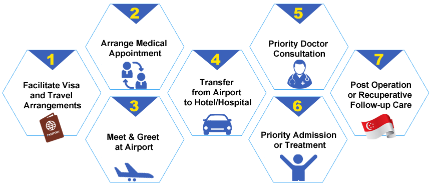 1. Medical Visa submission and application (if needed). This process usually takes about 3 to 5 working days, a fee of SGD$50 / RMB300 (approximate) is chargeable.